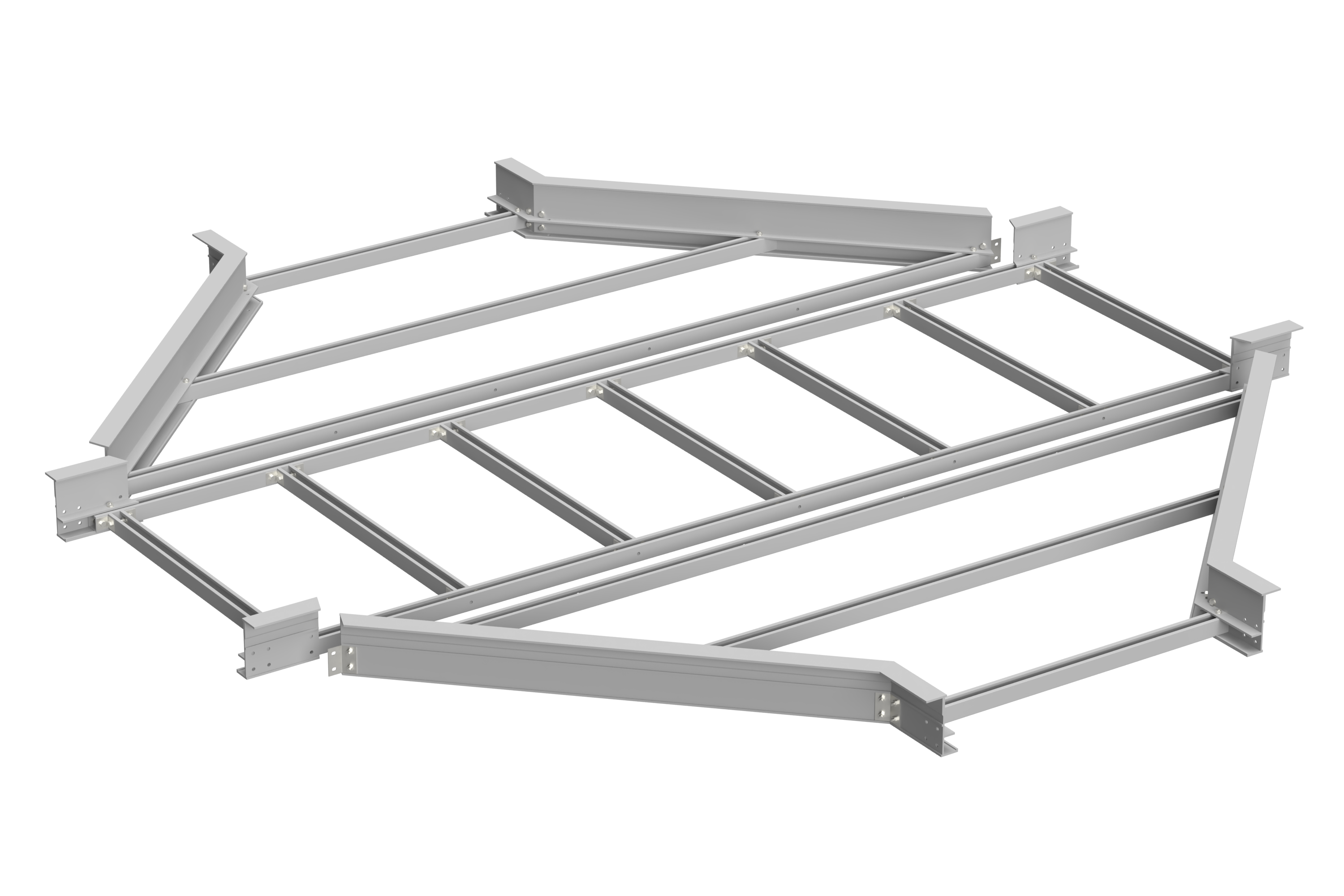 The ladder type system comprises two channel or I-beam side rails connected by transverse rungs. All rungs to side channel or I-beam connected with mechanical and chemical (adhesive). The space between rungs is 300 mm. Cable Trays are joined by coupler.
